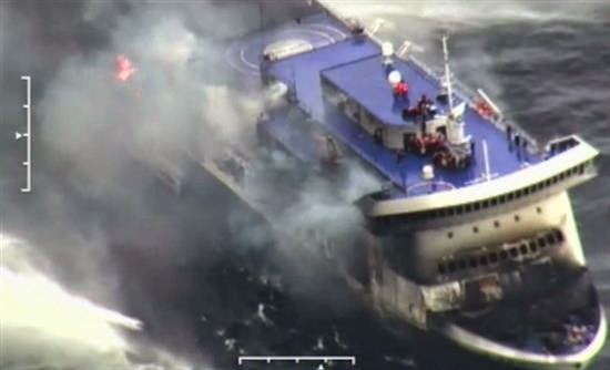 Συγκλονιστικές φωτογραφίες από το φλεγόμενο επιβατηγό